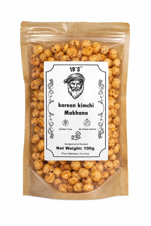19's Korean Kimchi Makhana, Gluten Free, No Preservatives, Handpicked & Roasted Fox Nuts, 100g